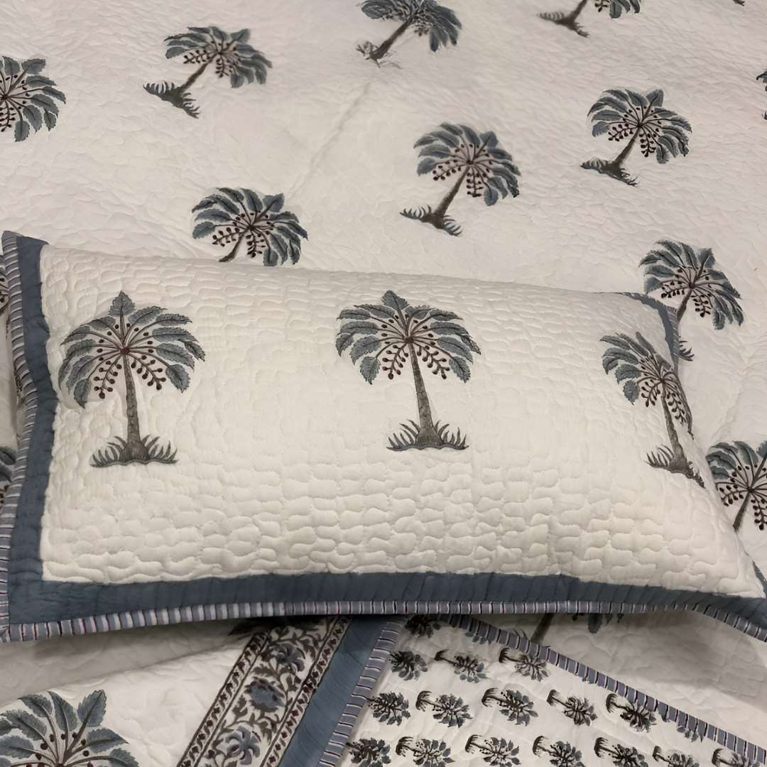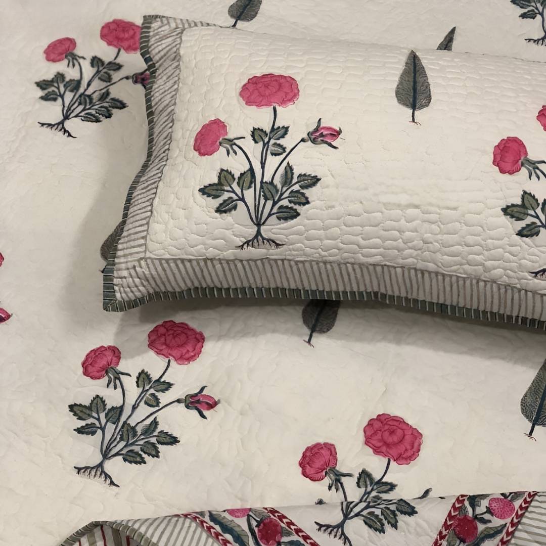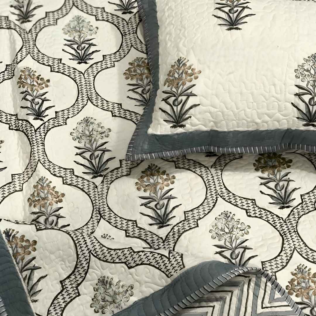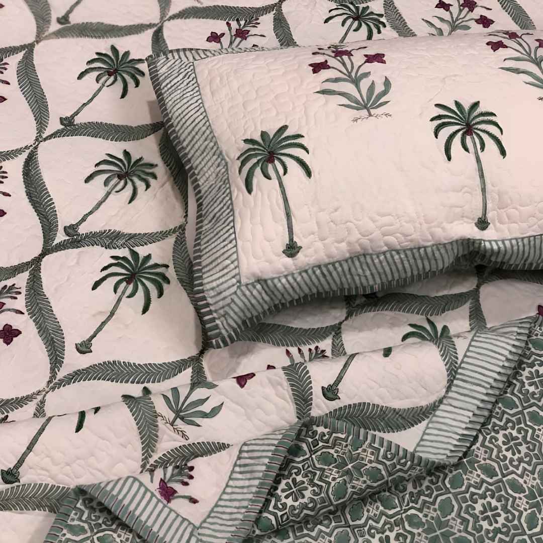 Crafted bed covers, pure cotton, king size, earthy sustainable print, Jaipur style.